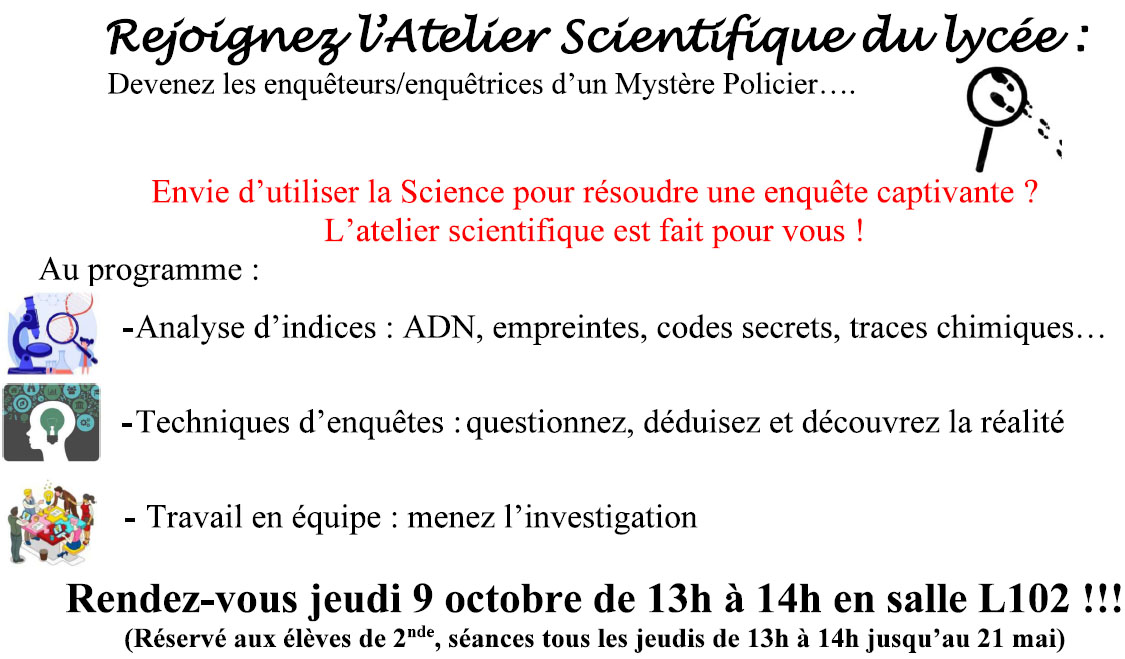 L'Atelier Scientifique va bientôt commencer