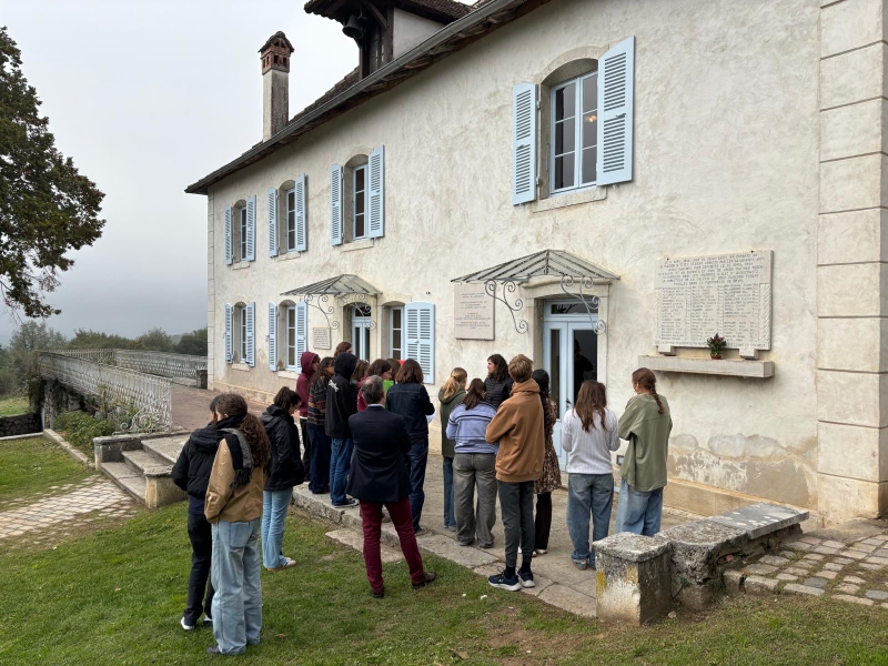 Les élèves de Terminale de la Section internationale britannique ont travaillé pendant une journée en anglais sur le site du Musée-Mémorial de la Maison d'Izieu, mercredi 1er octobre, dans le cadre de la préparation de leurs études de cas, au plus près des événements de la Seconde Guerre mondiale. Puis ils ont réfléchi sur les génocides et les crimes contre l'humanité qui ont marqué le XXème siècle. Une journée studieuse, riche en découvertes !